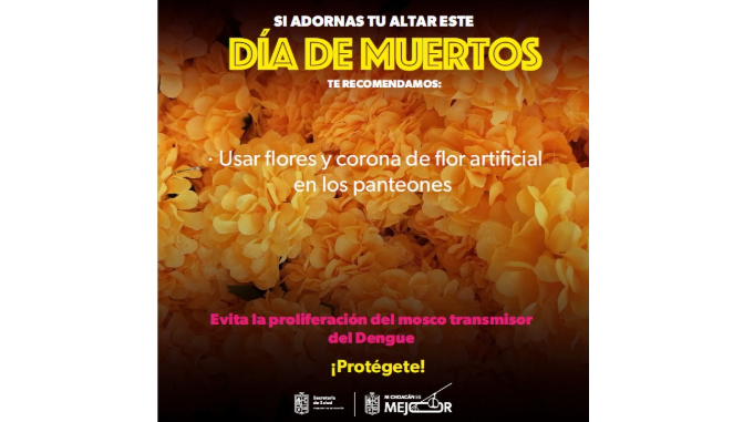 Morelia, Michoacán, 30 de octubre de 2025.- En el marco de la celebración de la Noche de Muertos, una de las tradiciones más importantes y visitadas del estado, la Secretaría de Salud de Michoacán (SSM) hace un llamado a la población para reforzar las medidas de prevención contra el dengue y evitar la proliferación del mosquito Aedes aegypti.