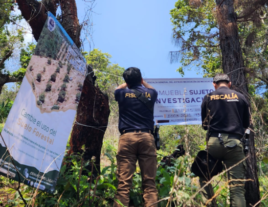 Morelia, Mich., a 24 de agosto de 2025.- La Fiscalía General del Estado de Michoacán (FGE), a través de la Fiscalía Especializada en Combate a los Delitos Contra el Ambiente y la Fauna, cumplimentó una orden de cateo en un predio del municipio de Pátzcuaro, por su posible relación en delitos contra el ambiente.