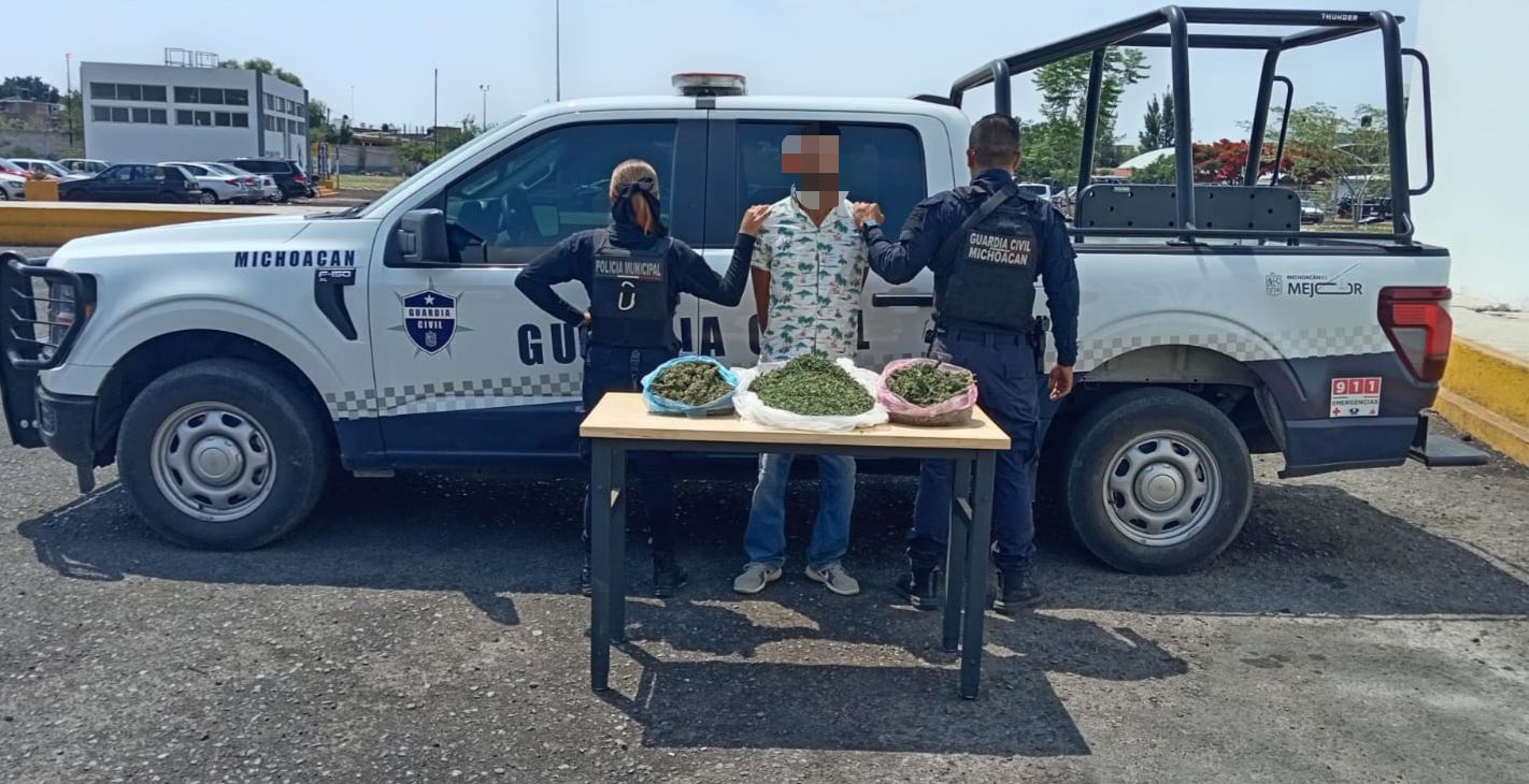 Zamora, Mich., a 22 de mayo del 2025.- La Secretaría de Seguridad Pública (SSP) detuvo en el municipio de Zamora a un hombre en portación de 1.5 kg de marihuana, al parecer utilizada para la comercialización al menudeo.