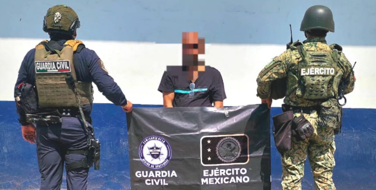 Durante el desarrollo de patrullajes de vigilancia en la localidad de Chandio de esta demarcación, los elementos de la Guardia Civil y el Ejército Mexicano lograron el aseguramiento de la persona en mención.