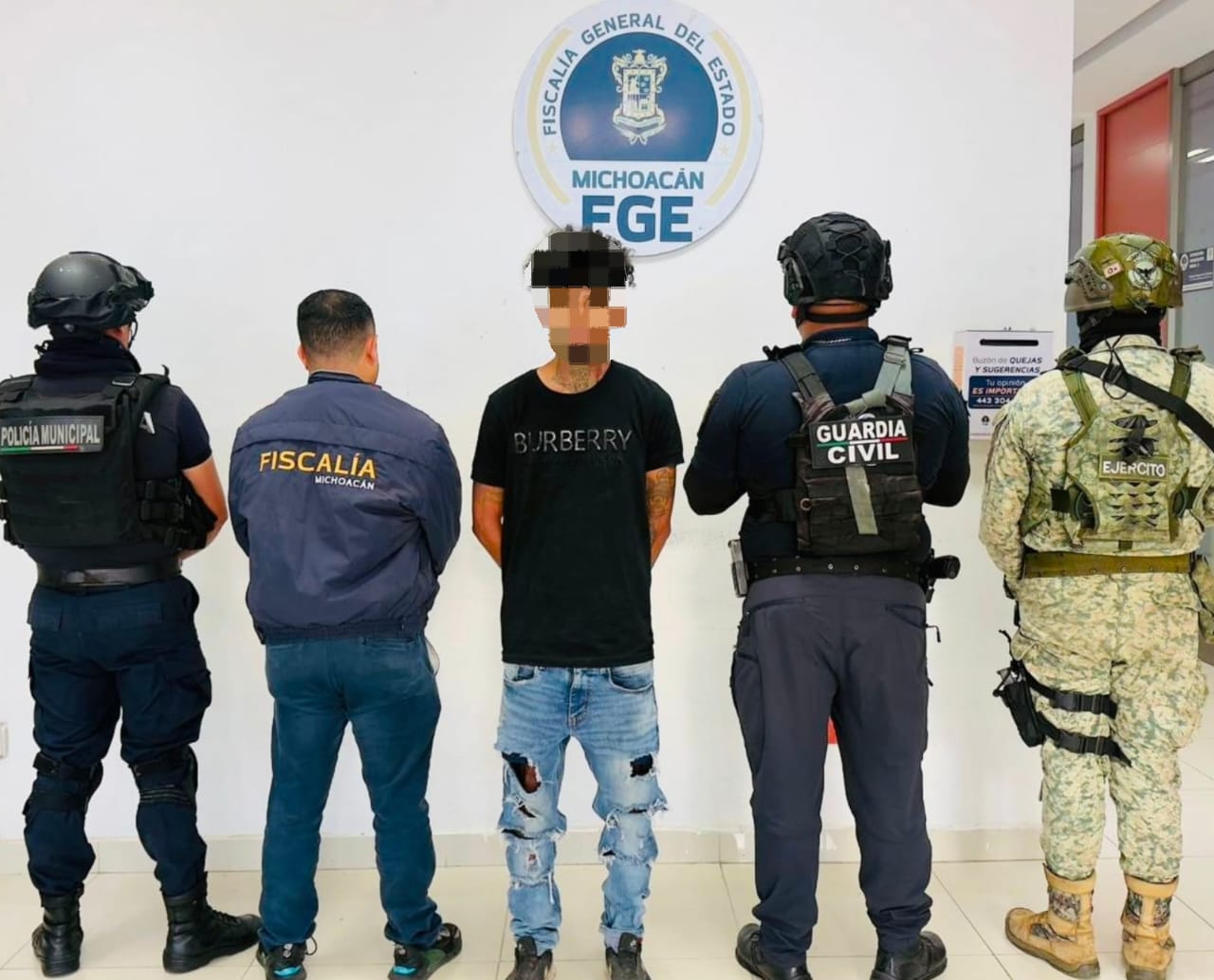 Jacona, Mich., a 11 de agosto del 2025.- Derivado de las actuaciones realizadas por parte de los agentes de las secretarías de Seguridad Pública (SSP) y de la Defensa Nacional (Defensa), así como de la Fiscalía General del Estado (FGE) y la Policía Municipal, se detuvo a un hombre en el municipio de Jacona, mismo que cuenta con un mandato judicial vigente por delitos contra la salud.