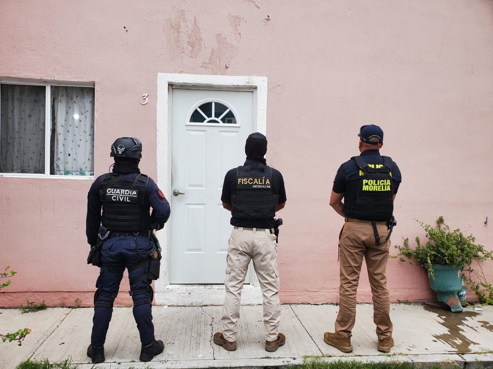 Durante la diligencia, personal de la Policía de Investigación (PDI) especializado en delitos de alto impacto, en coordinación con el binomio canino K9, llevó a cabo la intervención, mientras que elementos de la Policía Morelia y de la Guardia Civil brindaron seguridad perimetral en la zona.