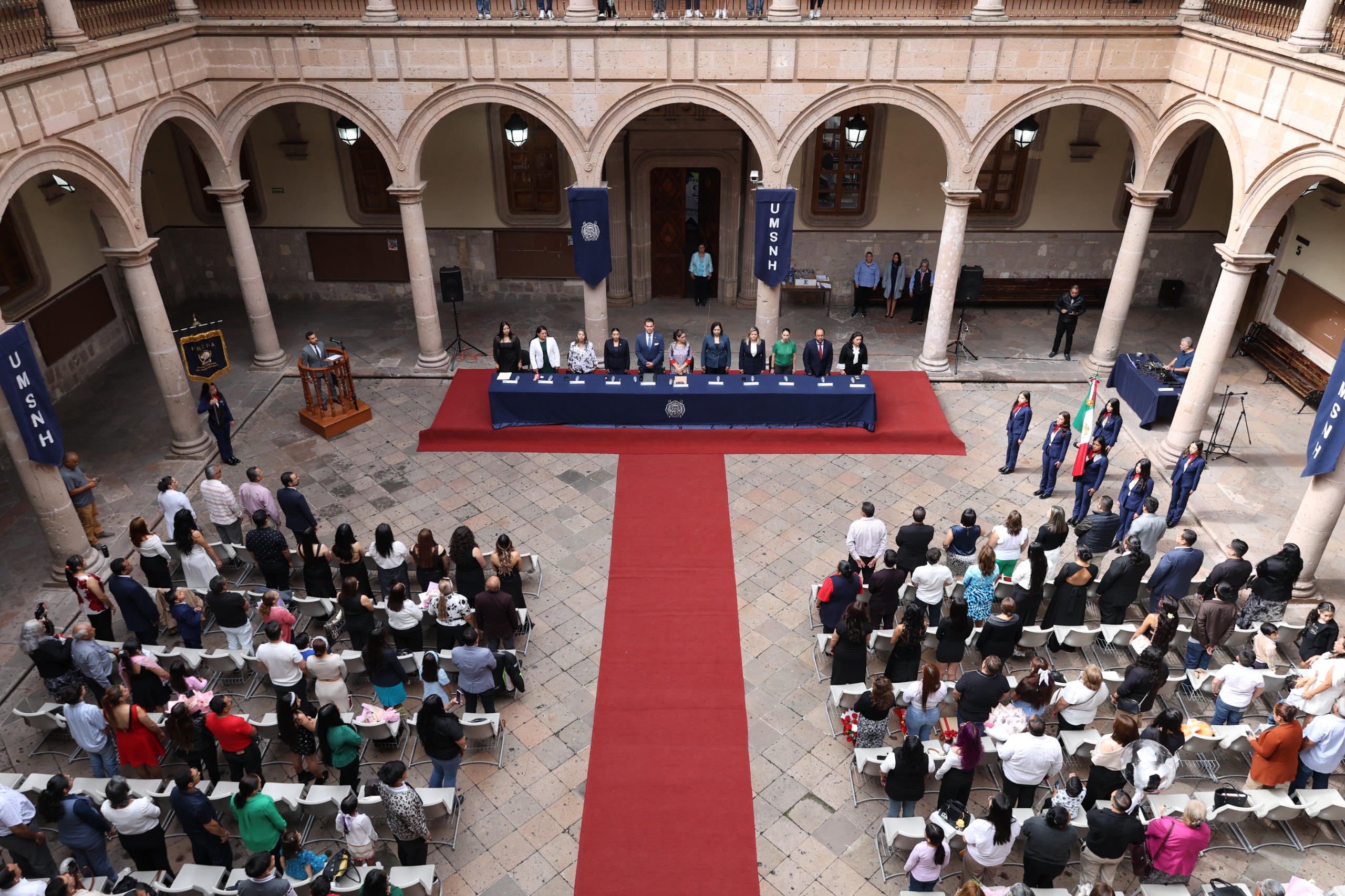 Morelia, Michoacán, a 07 de agosto de 2025.-“Esta generación es un ejemplo de compromiso y adaptación a un modelo educativo flexible pero exigente, que demanda autodisciplina, organización y sobre todo pasión por aprender”, afirmó la coordinadora general de la División del Bachillerato Nicolaita, María Santoyo Tena, durante la ceremonia de clausura de la Generación 2023-2025 del Bachillerato en Línea.
