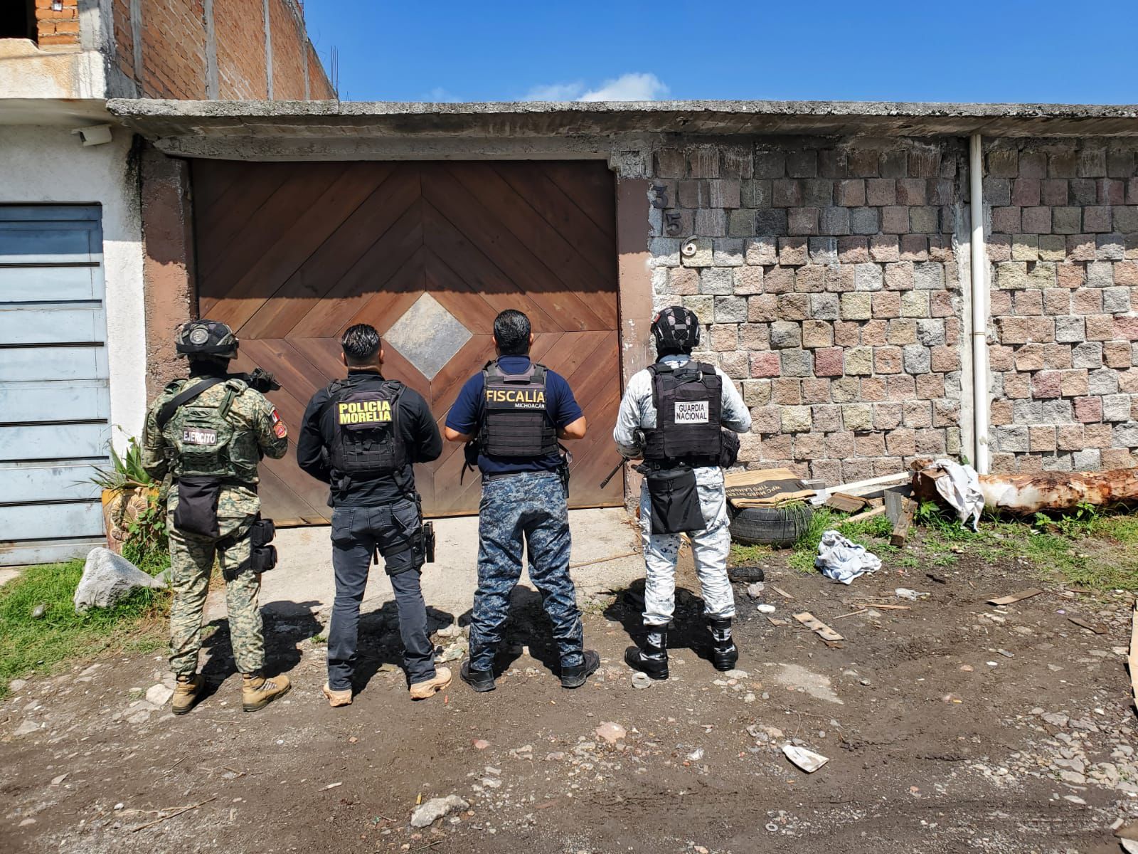 Para garantizar la seguridad perimetral durante el cateo, se contó con la colaboración de elementos de la Policía Municipal de Morelia, la Secretaría de la Defensa Nacional (SEDENA) y la Guardia Nacional.