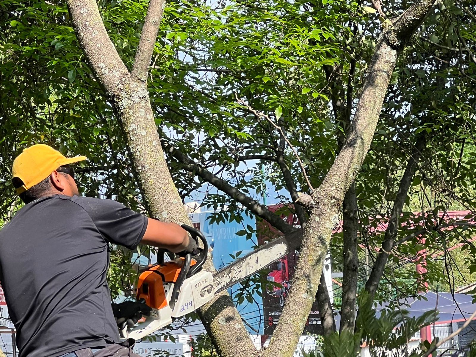 La jornada contó con la participación de una brigada conformada por aproximadamente 22 personas de la Secretaría de Servicios Públicos. Por instrucción del Secretario, Nezahualcóyotl Vázquez, se incorporó una grúa para reforzar las labores de las brigadas, optimizando los trabajos de mantenimiento para enfocarse a las copas de los árboles.