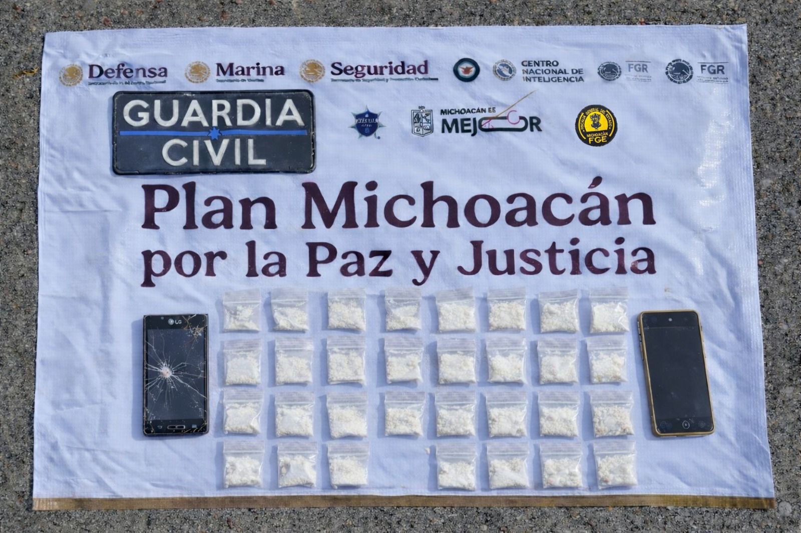 Tras darle alcance los elementos procedieron a verificar la bolsa, localizando en su interior 31 envoltorios plásticos que contenían una sustancia granulosa con características propias de la metanfetamina.