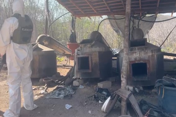Morelia, Mich., a 5 de diciembre de 2025.- Integrantes de la Guardia Nacional en coordinación con personal del Ejército Mexicano, durante patrullajes de vigilancia y reconocimientos terrestres en los municipios de Turicato y Nocupétaro, localizaron y aseguraron un laboratorio clandestino para elaboración de droga sintética; además de: