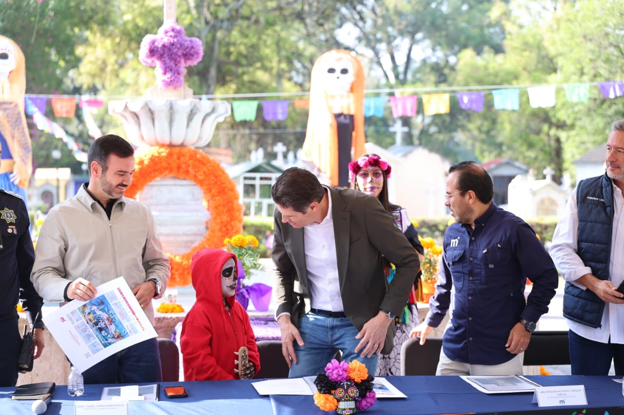 “Hace 10 años decidimos sacar la tradición de los panteones también al Centro de Morelia, y hoy la celebramos con más actividades y durante más días. Este año esperamos más de 150 mil visitantes en los panteones municipales. He dado instrucciones a todas las dependencias para garantizar el orden y la sana convivencia de las familias”, señaló Martínez Alcázar, al reconocer la participación de todas las áreas municipales en las labores de limpieza, seguridad y mantenimiento.