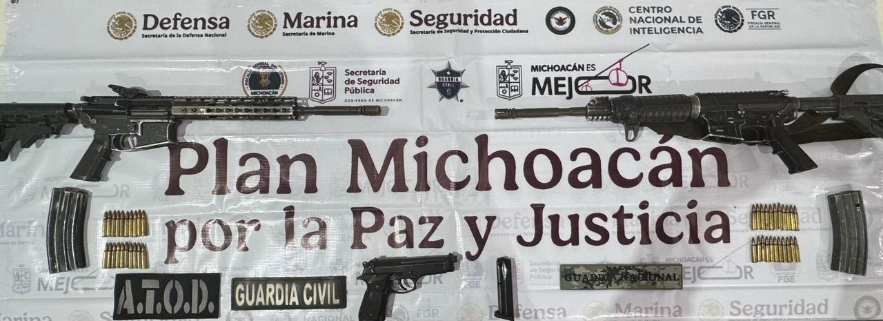 Morelia, Mich., a 21 de noviembre de 2025.- Elementos de la Secretaría de Seguridad Pública (SSP) y de la Guardia Nacional (GN) aseguraron un vehículo robado, tres armas de fuego y más de 40 municiones en la ciudad de Morelia.