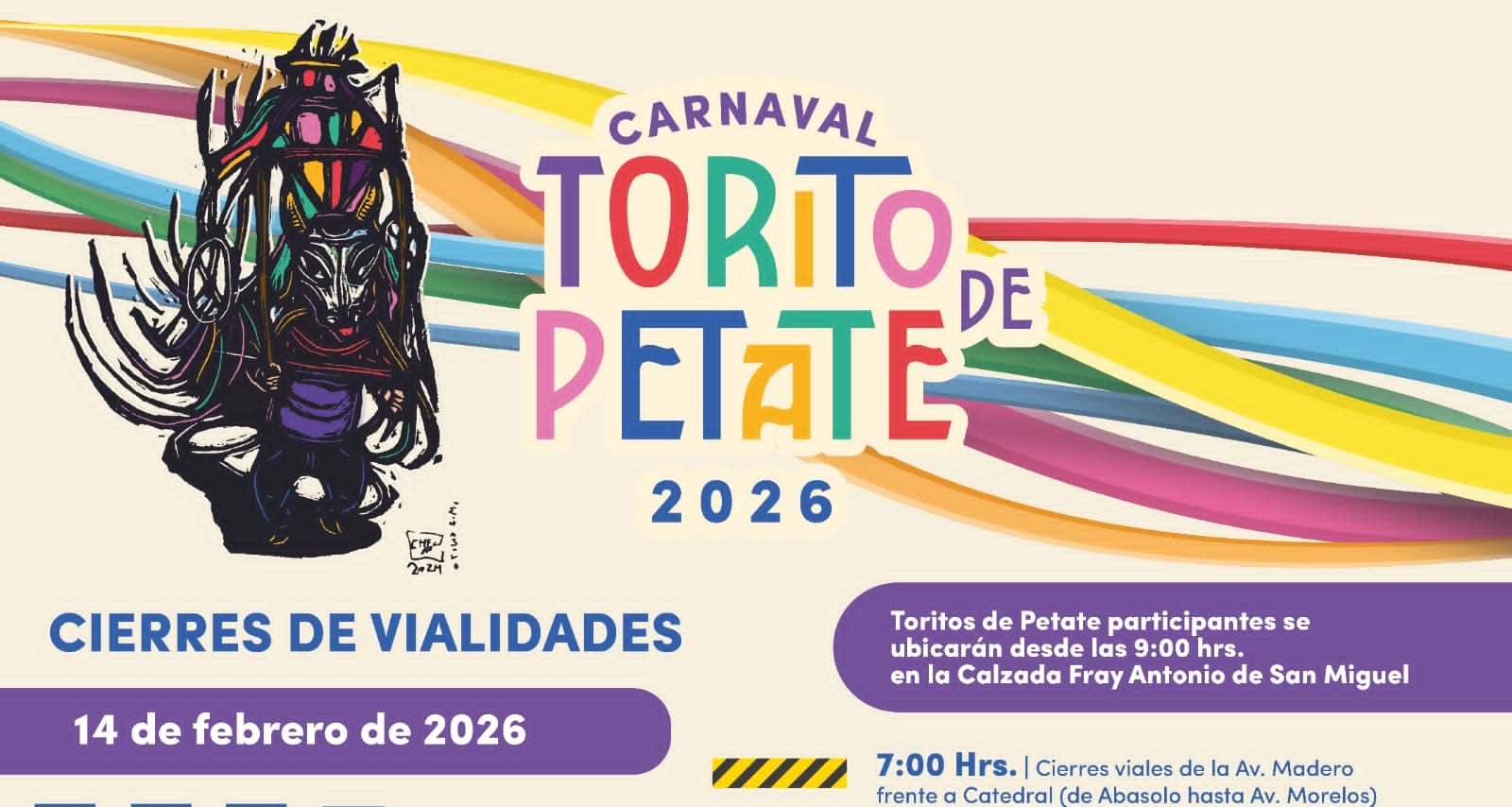 Morelia, Michoacán; 13 de febrero de 2026.- Policía Morelia informa a la ciudadanía que este sábado 14 de febrero se llevará a cabo el tradicional Carnaval del Torito de Petate, una tradición que fortalece la identidad cultural de Morelia y que podrá disfrutarse en un ambiente familiar y de sana convivencia.