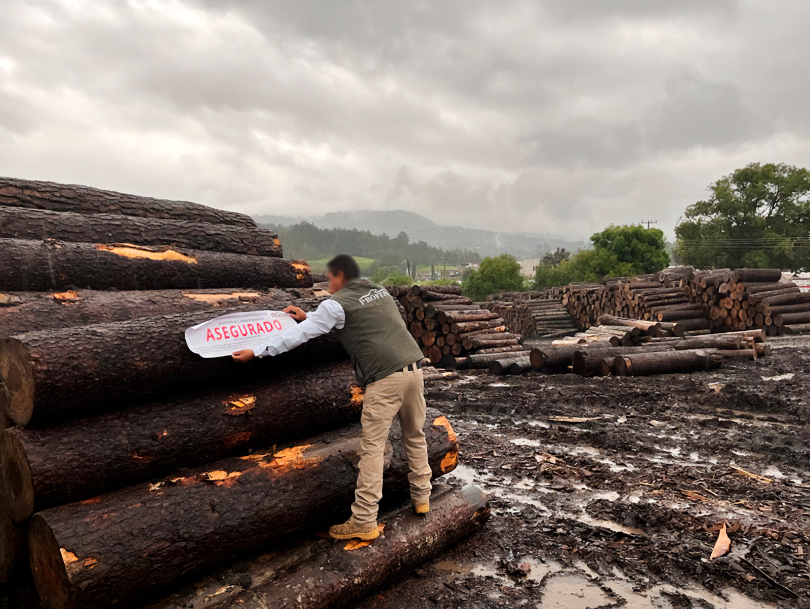 En el primer centro, personal de la Profepa aseguró precautoriamente un volumen de 812.5 m3 de madera de pino en rollo, 325.61 m3 de madera de oyamel en rollo y 128.39 m3 de madera de cedro blanco en rollo. Sumando un total de 1,266.51 m³ de madera en rollo.