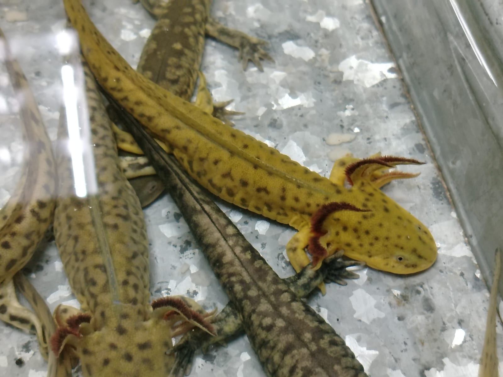 Morelia, Michoacán; 23 de mayo de 2025.- La Coordinación de Protección Civil y Bomberos de Morelia, a través de su Unidad de Rescate y Conservación Animal de Morelia (Urcam), rescataron a 13 ejemplares de la especie Ambystoma amblycephalum, conocida como «Ajolote de cabeza chata».