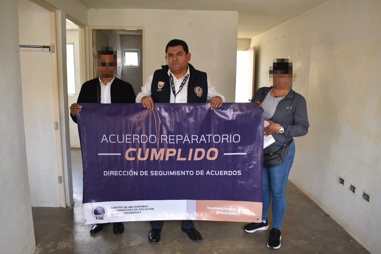 Morelia, Mich., a 4 de agosto de 2025.- Tras celebrar un acuerdo reparatorio, la Fiscalía General del Estado de Michoacán (FGE), a través del Centro de Mecanismos Alternativos de Solución de Controversias (CMASC), recuperó un inmueble en favor de su legítima propietaria, víctima de despojo, ubicado en el municipio de Tarímbaro.