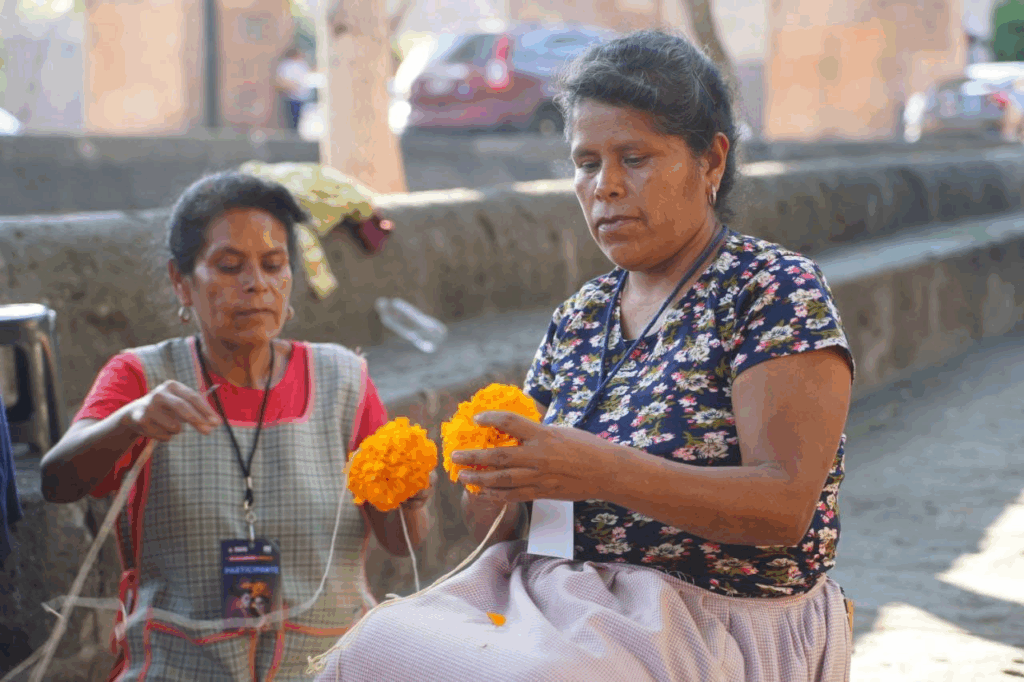 “Desde la Secretaría de Cultura de Morelia coordinamos la elaboración de altares y tapetes con 30 instituciones educativas públicas y privadas”, explicó la titular de SeCultura Morelia, Fátima Chávez Alcaraz.