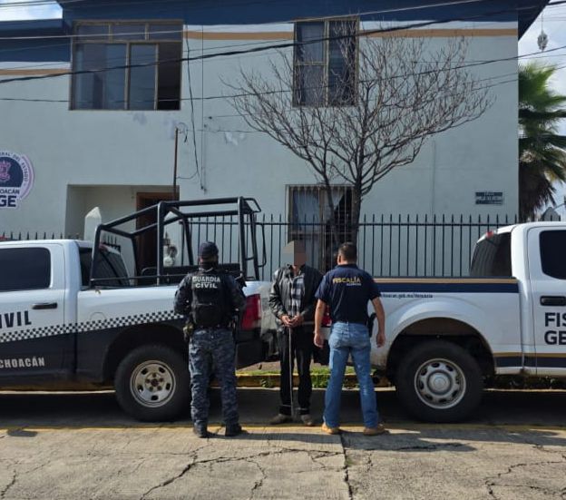 Tacámbaro, Mich., a 3 de agosto de 2025.- Producto de los trabajos interinstitucionales coordinados a favor del bienestar de la sociedad michoacana, los elementos de la Secretaría de Seguridad Pública (SSP) y la Fiscalía General del Estado (FGE) detuvieron a un hombre con mandato judicial vigente por el delito de homicidio calificado, en el municipio de Tacámbaro.