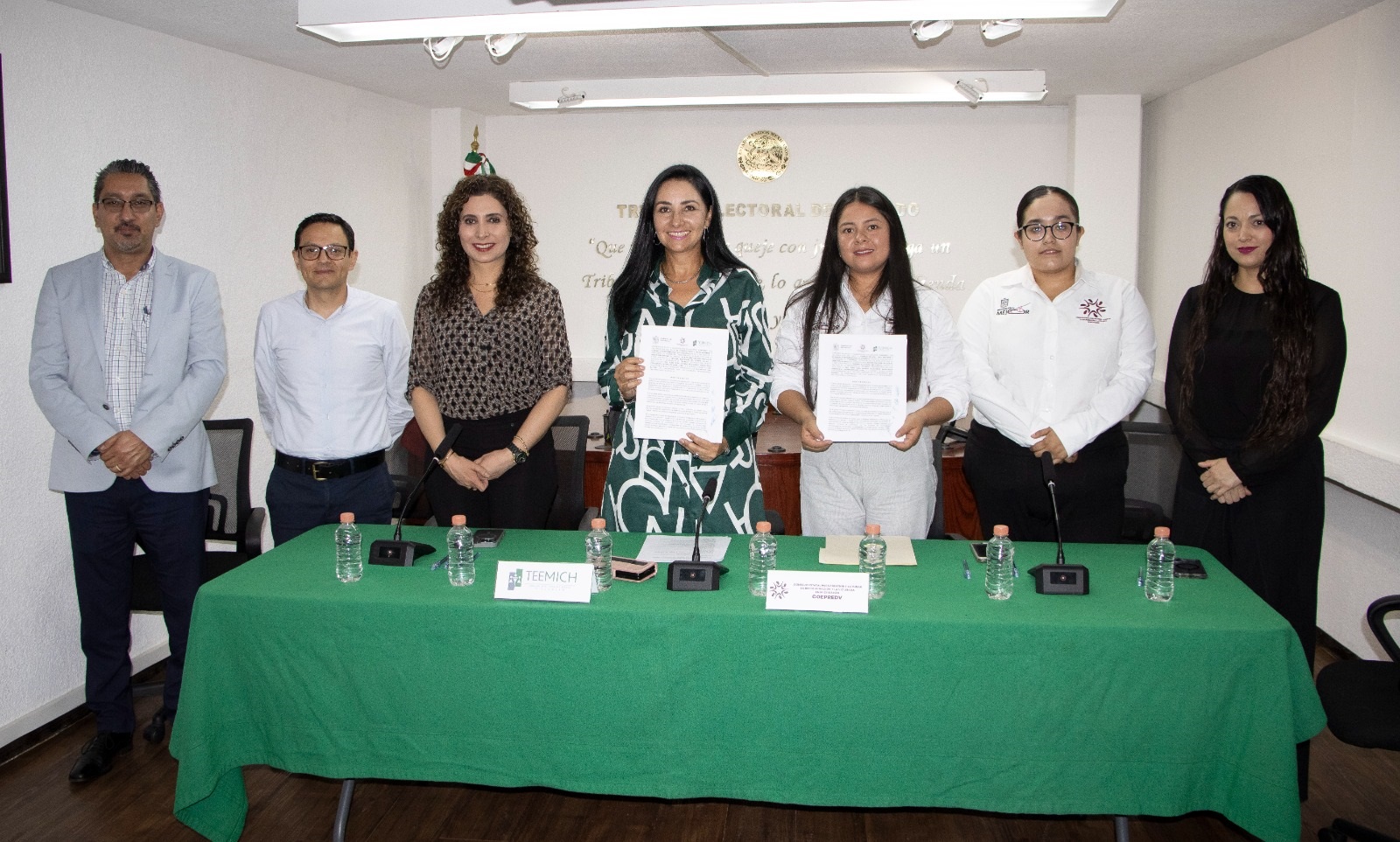 Morelia, Mich. A 22 de julio de 2025. Con el propósito de fortalecer acciones interinstitucionales encaminadas a garantizar un entorno de respeto, igualdad y no discriminación en la función del jurisdiccional, el Tribunal Electoral del Estado signó un convenio de colaboración con el Consejo Estatal para Prevenir y Eliminar la Discriminación y la Violencia (COEPRENDV).