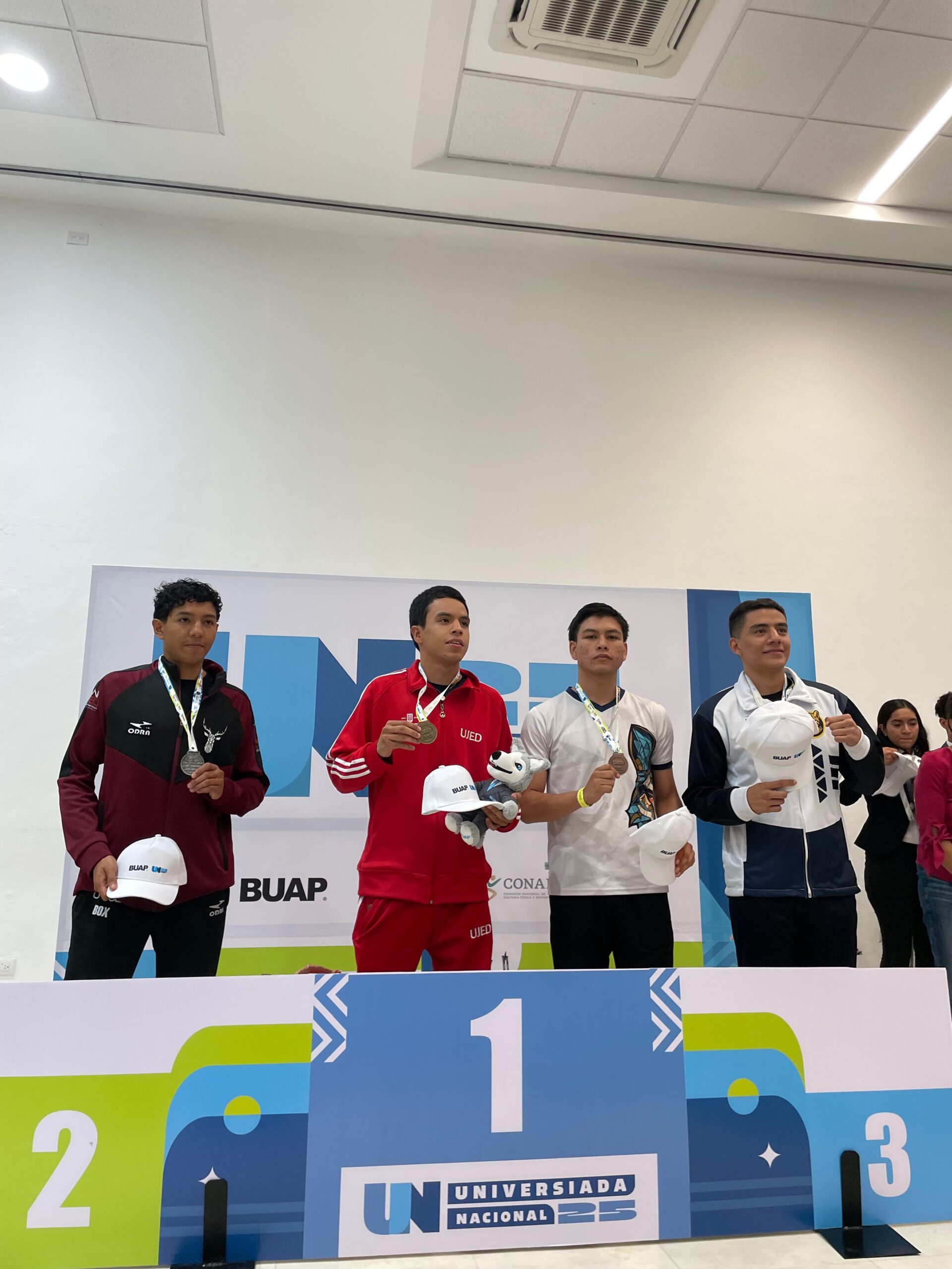 Además, Diego Adrián Hernández Inocencio, alumno de la Facultad de Salud Pública y Enfermería, se quedó con el tercer lugar de la categoría 63-69 kg; Ernesto Gómez Ponce, de la Facultad de Derecho y Ciencias Sociales, hizo lo propio en 57-63 kg, y Fernando Romero Arriaga, también de Salud Pública y Enfermería, se colgó el Bronce en +91 kg.